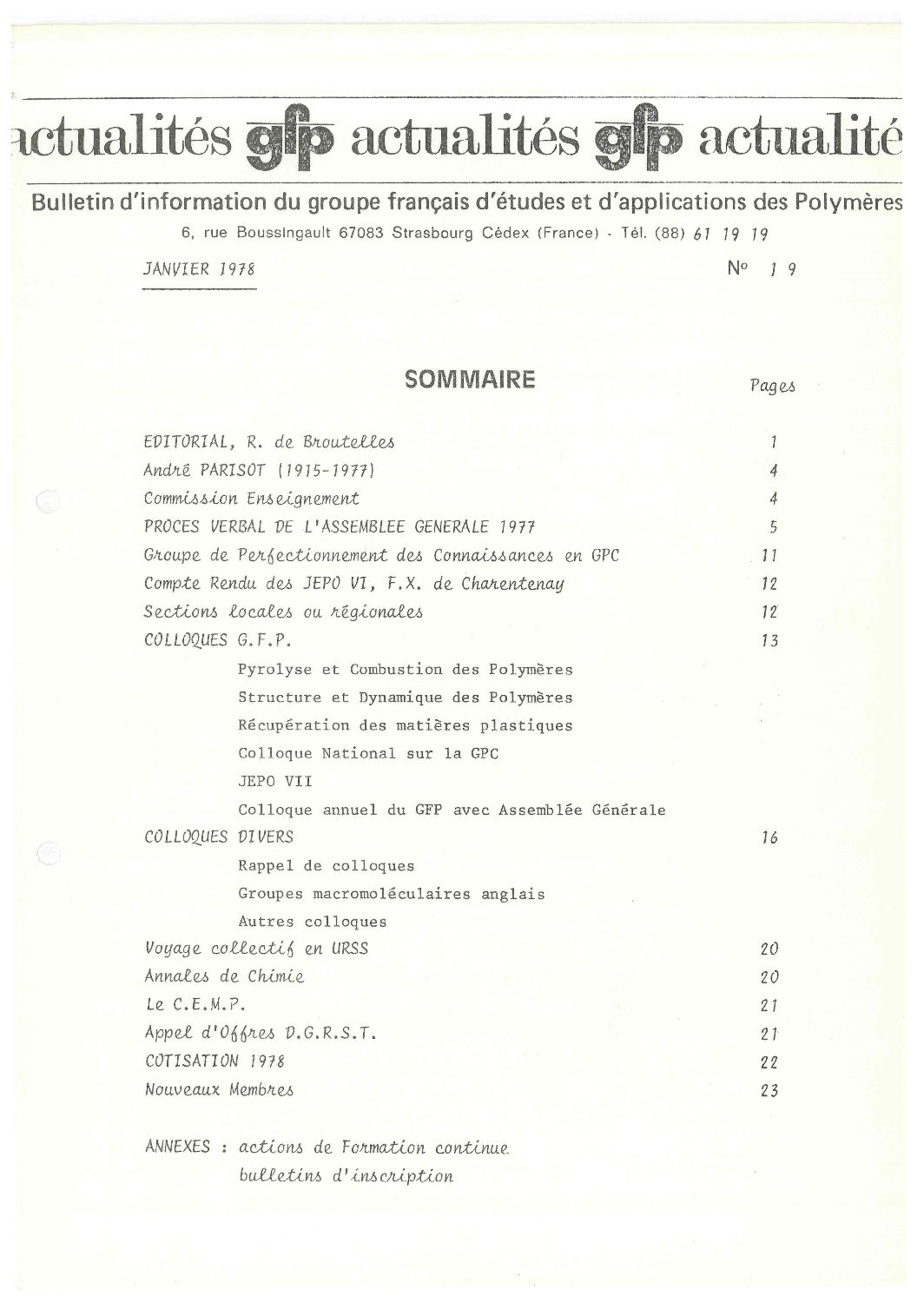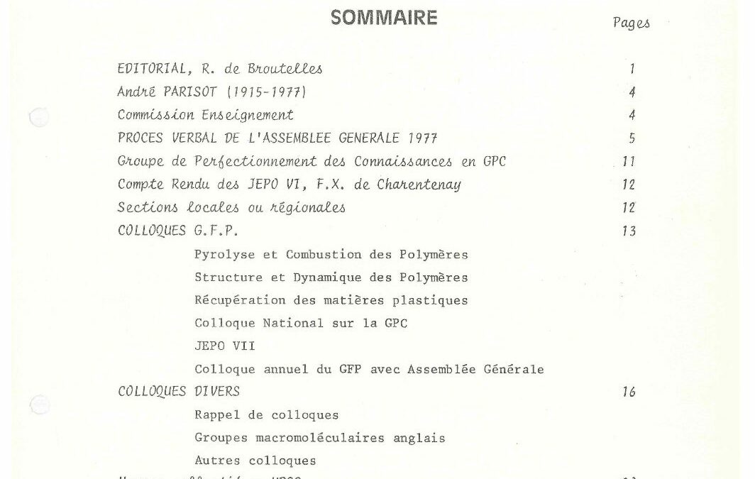 • 50 ans du GFP – Une année ‘Polymère’