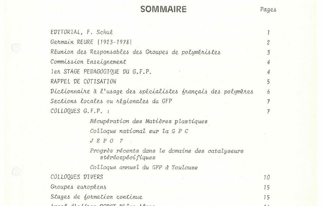 • 50 ans du GFP – Une année ‘Polymère’