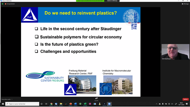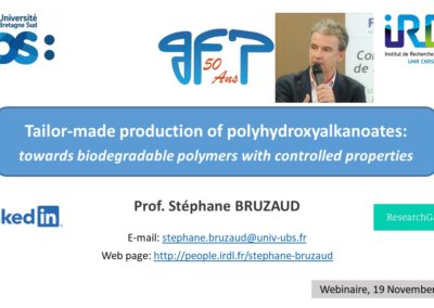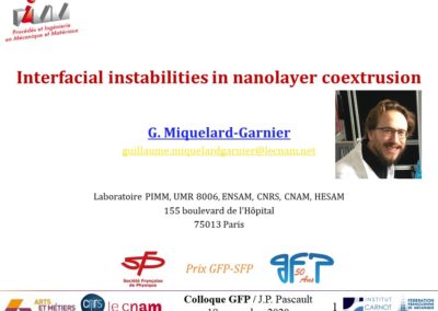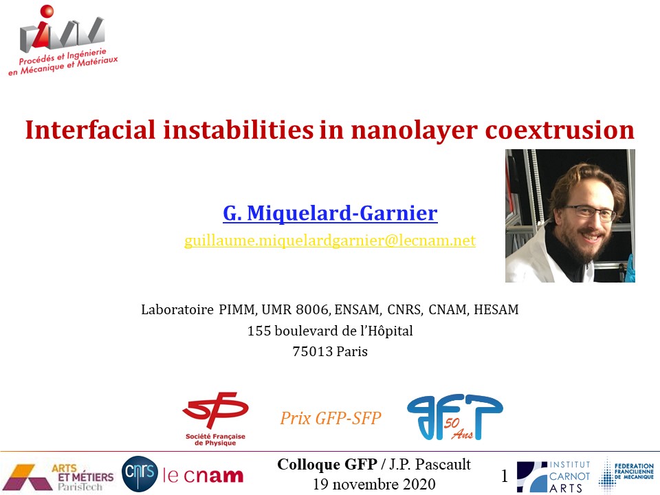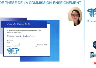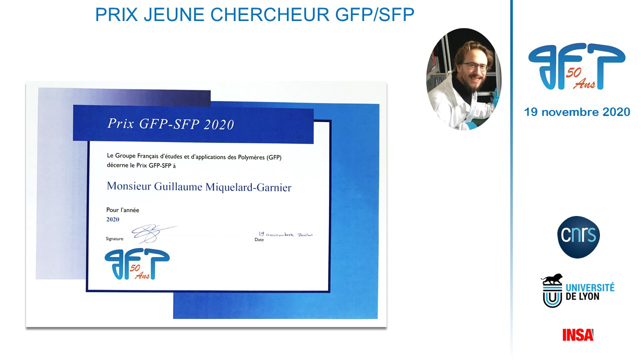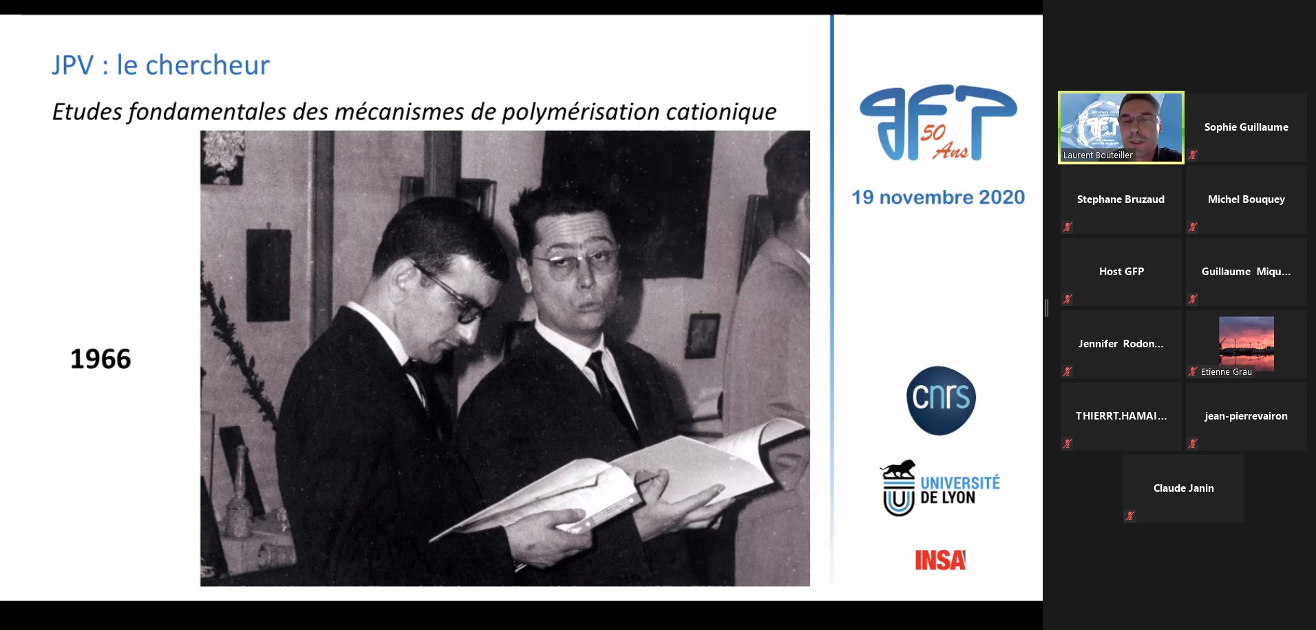 En attendant, le GFP s’est mobilisé pour organiser un mini symposium d’une journée en distanciel. Il se tiendra le 19 novembre prochain. Trois temps forts vont rythmer la journée. Le premier est consacré à un hommage à notre collègue Jean-Pierre Pascault qui nous a quitté cette année mais qui aura marqué durablement notre communauté par son engagement en science macromoléculaire dans son laboratoire comme au sein du GFP*. A l’issue d’un court témoignage de son ami C. Janin, une conférence plénière en son hommage sera donnée par le Prof. MUELHAUPT de l’Université de Freiburg. Le deuxième temps fort, ouvert à tous les participants, est dédié à l’Assemblée Générale de l’association au cours de laquelle un bilan annuel et prospectif sera fait. Enfin, une troisième partie est organisée autour de conférenciers invités, récemment primés d’une part (Prix d’Honneur Spécial 50 ans du GFP,