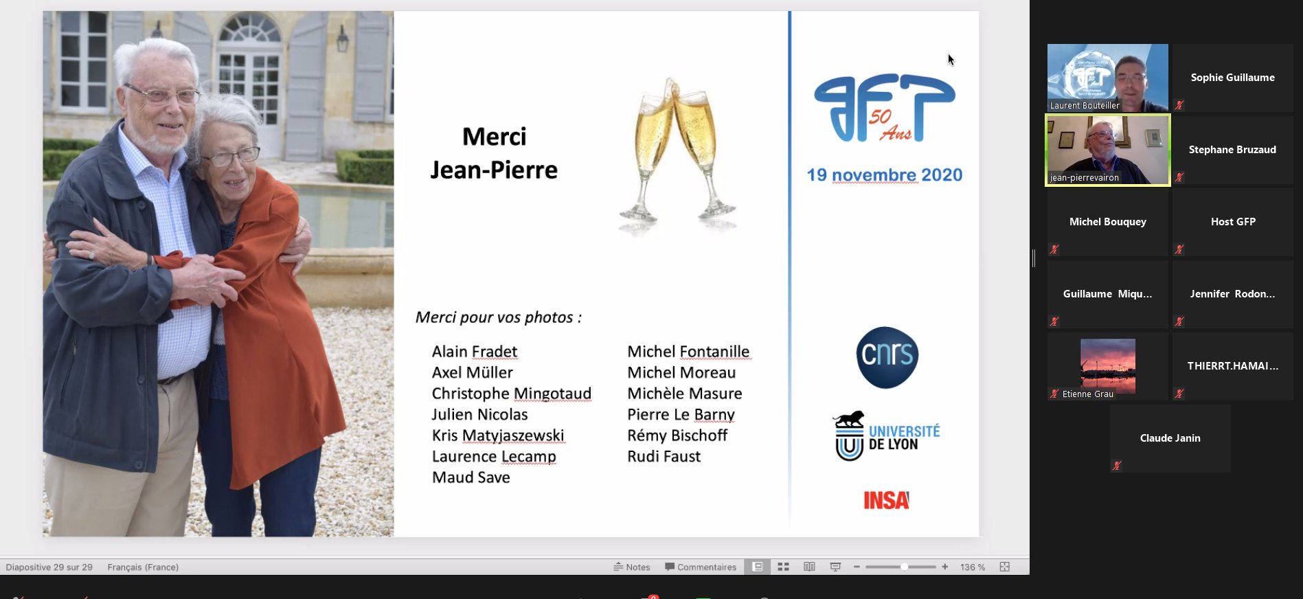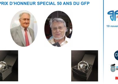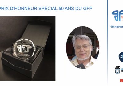 (*) Un hommage par son laboratoire et le Prix d’Honneur Spécial 50 ans du GFP qui lui a été attribué avec la remise à son épouse auront lieu lors du Colloque National du GFP en Novembre 2021.