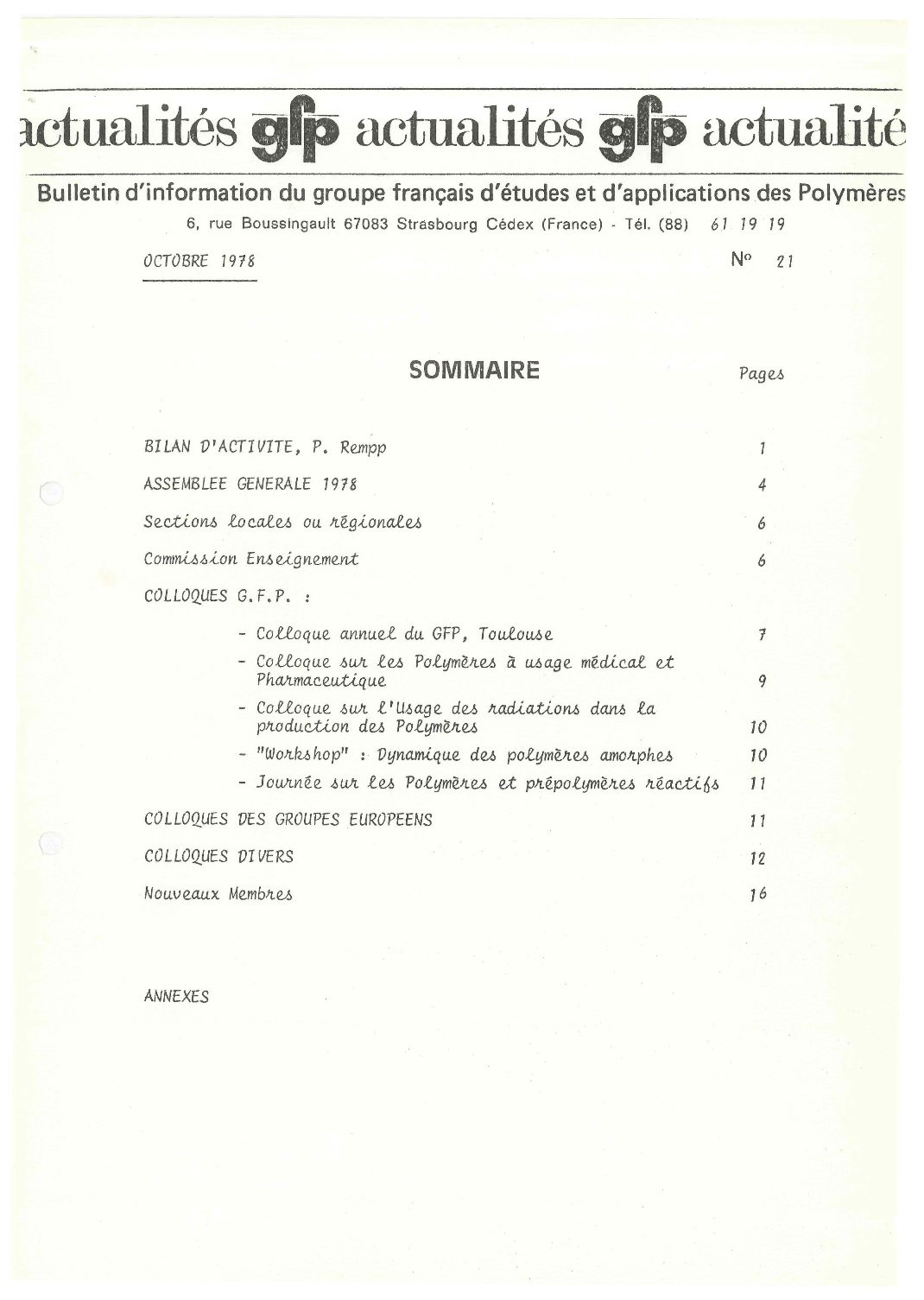 • 50 ans du GFP – Une année ‘Polymère’