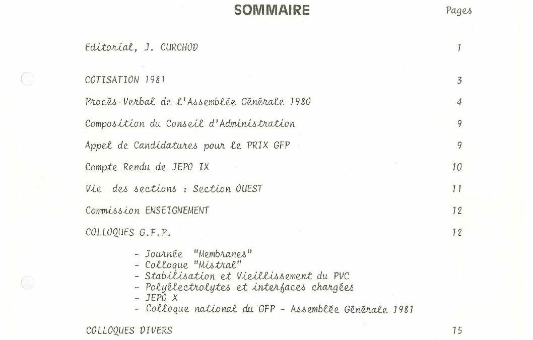 • 50 ans du GFP – Une année ‘Polymère’