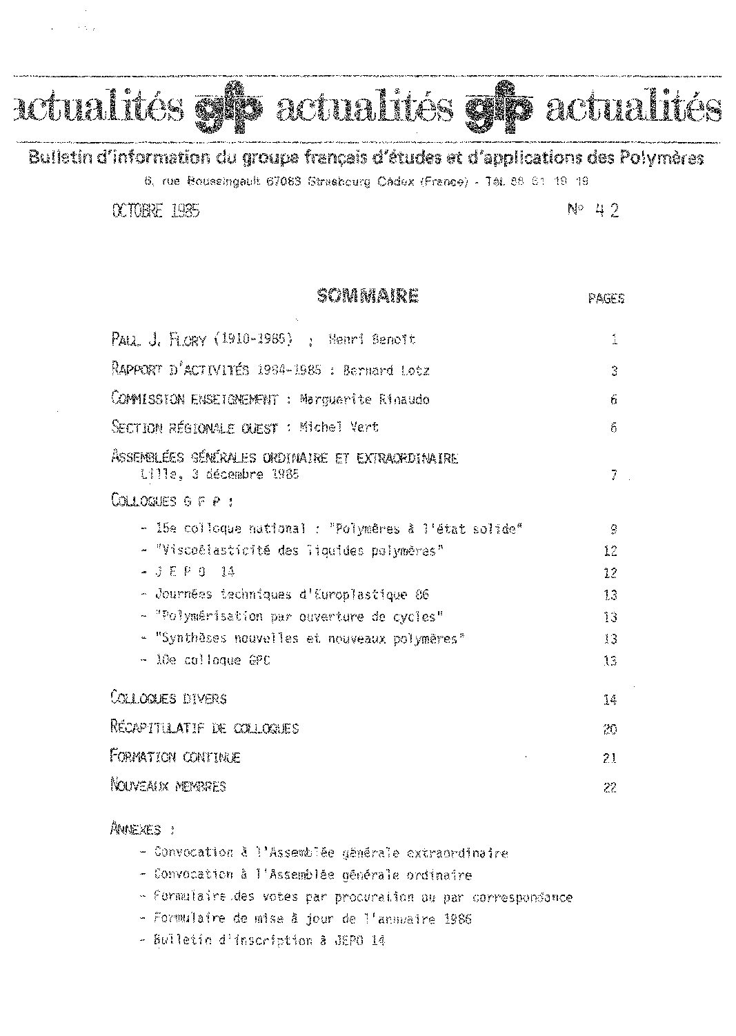 • 50 ans du GFP – Une année ‘Polymère’