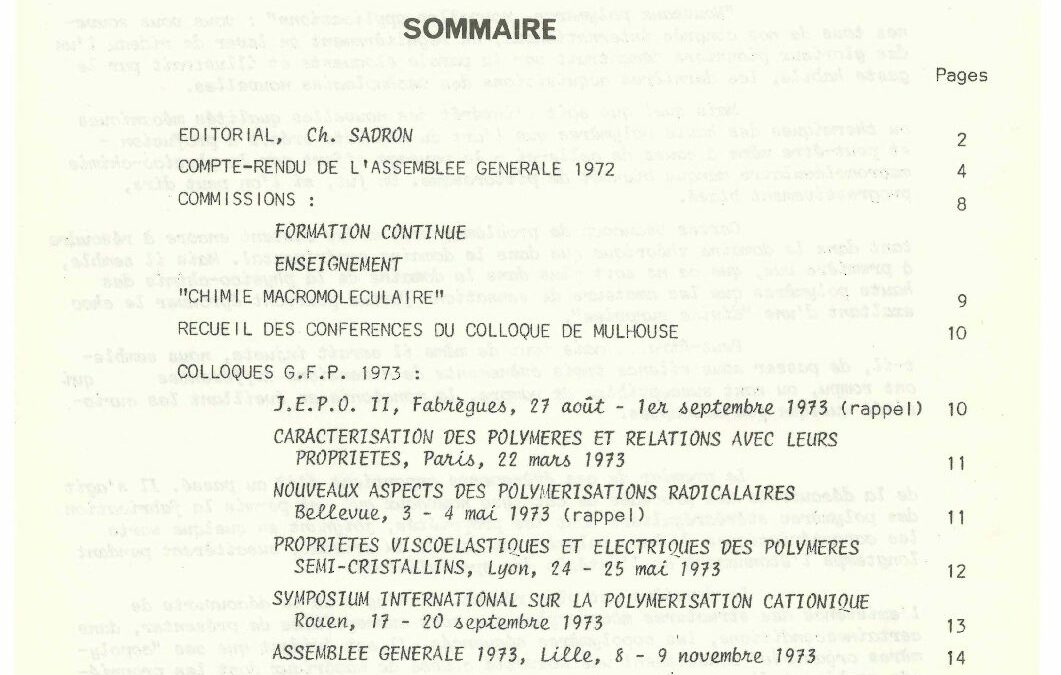 • 50 ans du GFP – Une année ‘Polymère’