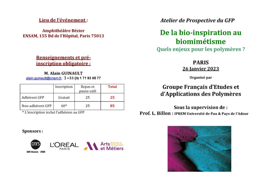 Cet atelier vise à mettre en relation les polyméristes, les industriels et les chercheurs en sciences du vivant, pour appréhender les actuelles avancées et retombées majeures de ces nouveaux paradigmes, et en dégager des voies de recherche innovantes dans le domaine des polymères.