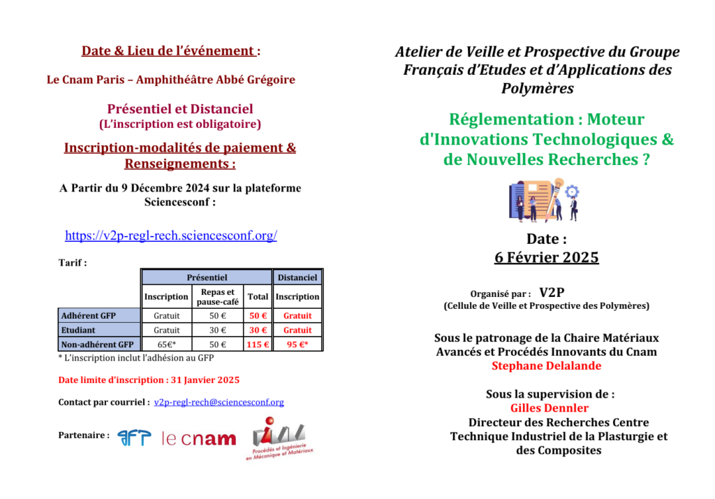 - Polymères de demain pour la fabrication additive (Paris, 10 décembre 2015)