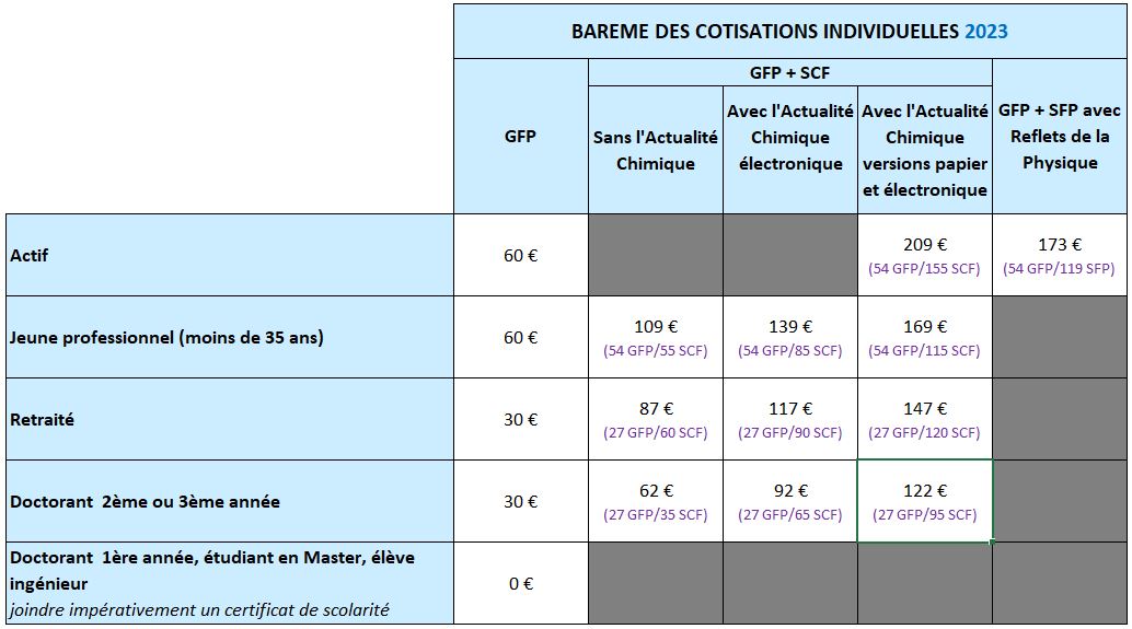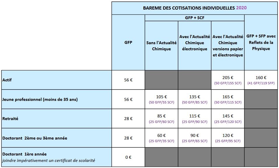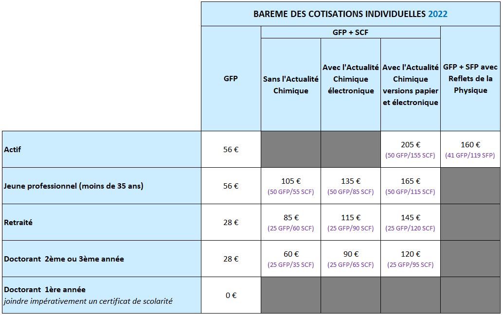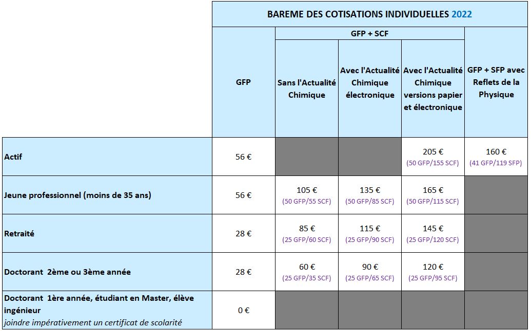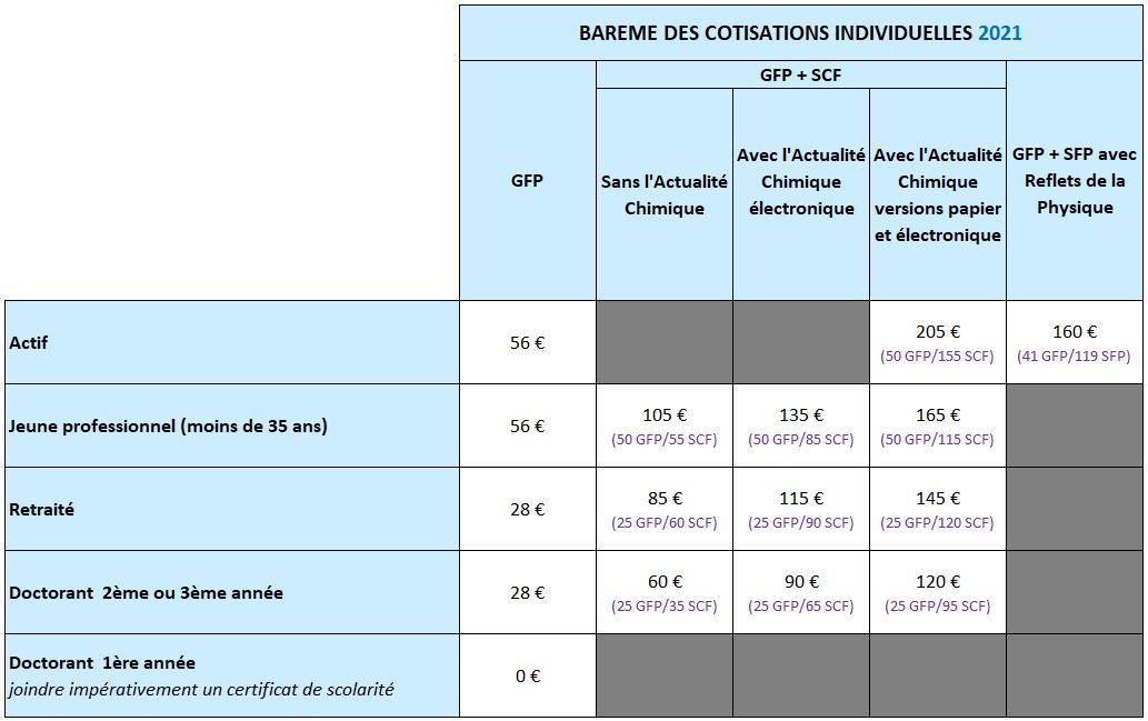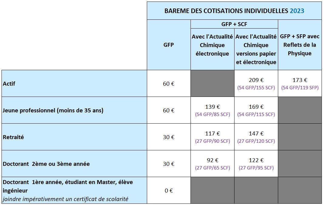 Le GFP étant partenaire de la Société Chimique de France (SCF) et de la Société Française de Physique (SFP), il est possible d’adhérer conjointement :