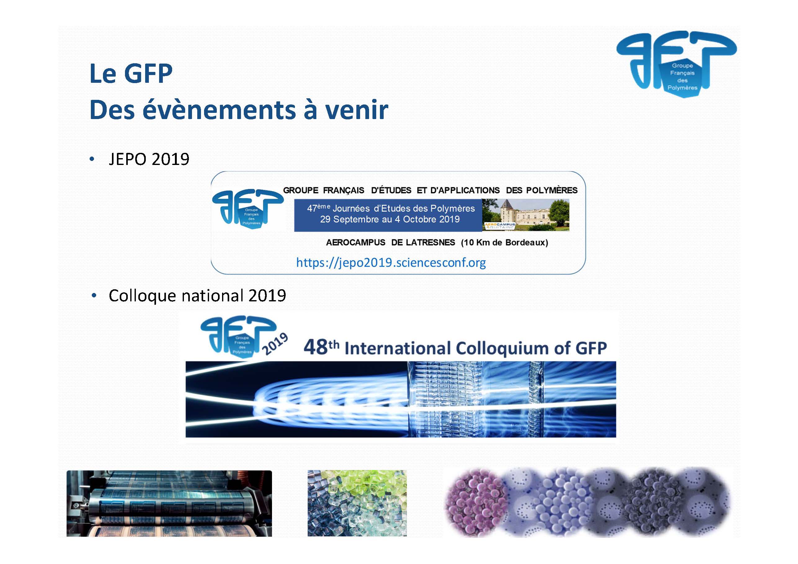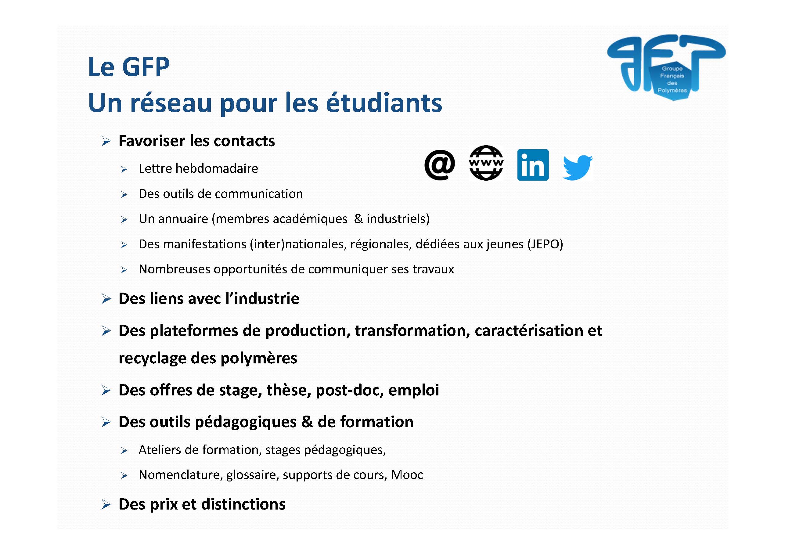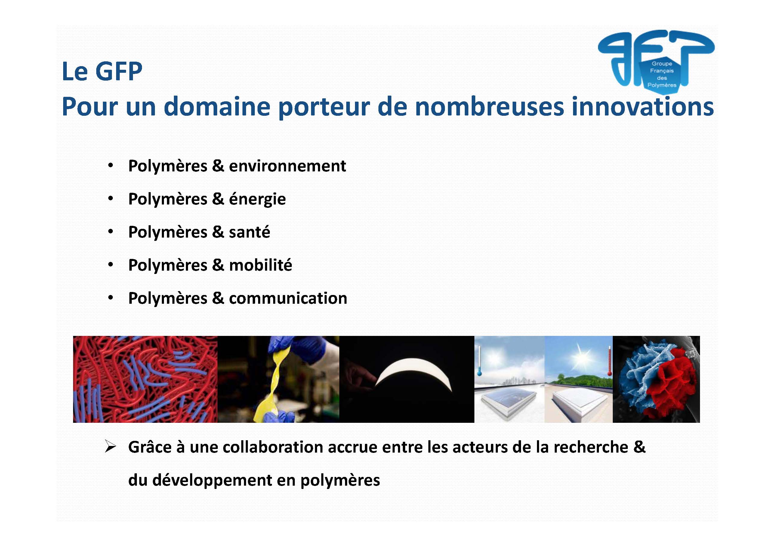 Téléchargez ici la présentation du GFP sur support ppt que vous pourrez utiliser tout ou partie lors de vos présentations scientifiques ou de vos représentations pour le compte du GFP.