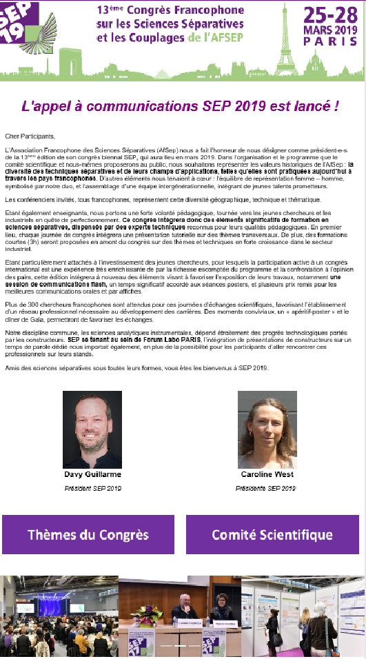 13ème Congrès Francophone sur les Sciences Séparatives et les Couplages de l’AfSep