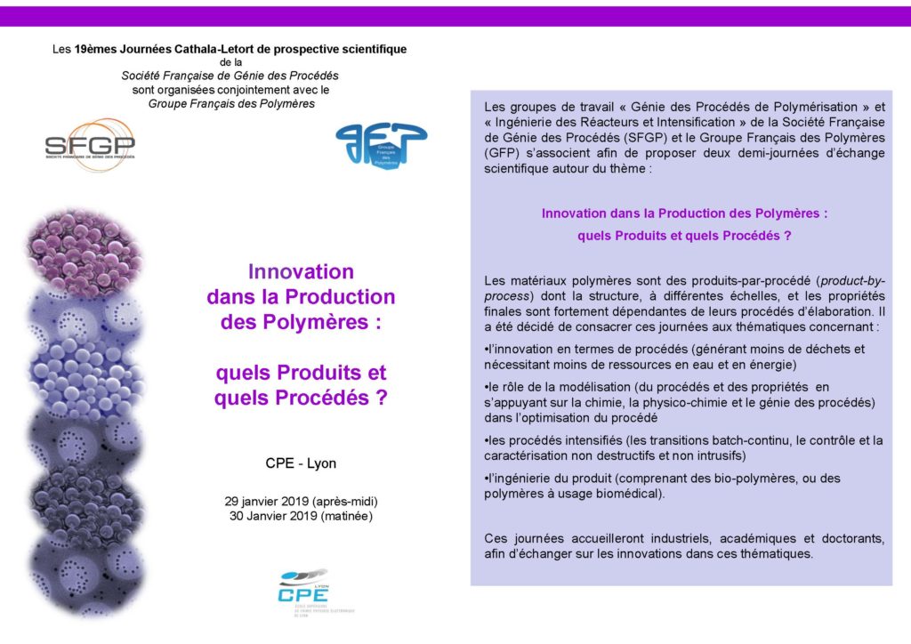 19èmes Journées Cathala-Letort de prospective scientifique : Innovation dans la Production des Polymères : quels Produits et quels Procédés ?