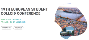 The 19th European Student Colloid Conference will be held from June 24 to 27, 2024, in Bordeaux. This conference is specifically designed for young researchers, especially PhD students and postdocs, engaged in the interdisciplinary field of colloids, polymers, and interface science, spanning diverse backgrounds from chemistry to physics, biology to engineering.
