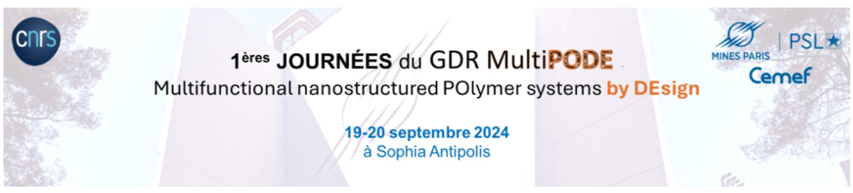 Les 1ères journées du GDR MultiPODE « Multifunctional nanostructured POlymer systems by DEsign » sont prévues les 19 et 20 septembre 2024 à Sophia Antipolis à Mines Paris – PSL, CEMEF.