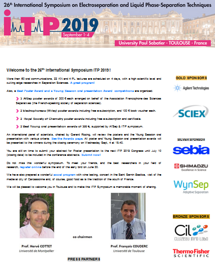 More than 60 oral communications, 22 KN and 4 PL lectures are scheduled on 4 days, with a high scientific level and cutting edge researches in Separation Sciences. A great program!
