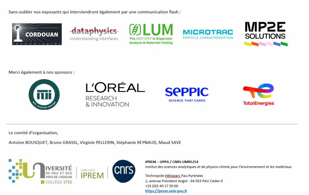 Au travers de communications orales et de posters, ces deux journées ont pour vocation de favoriser les rencontres et les échanges entre les scientifiques des milieux universitaires et industriels impliqués dans les domaines du Club Emulsion.