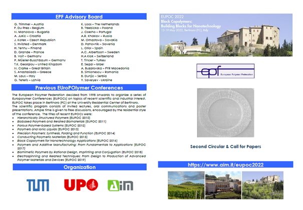We are pleased to announce the forthcoming Europolymer Conference, EUPOC 2022, of the European Polymer Federation on: