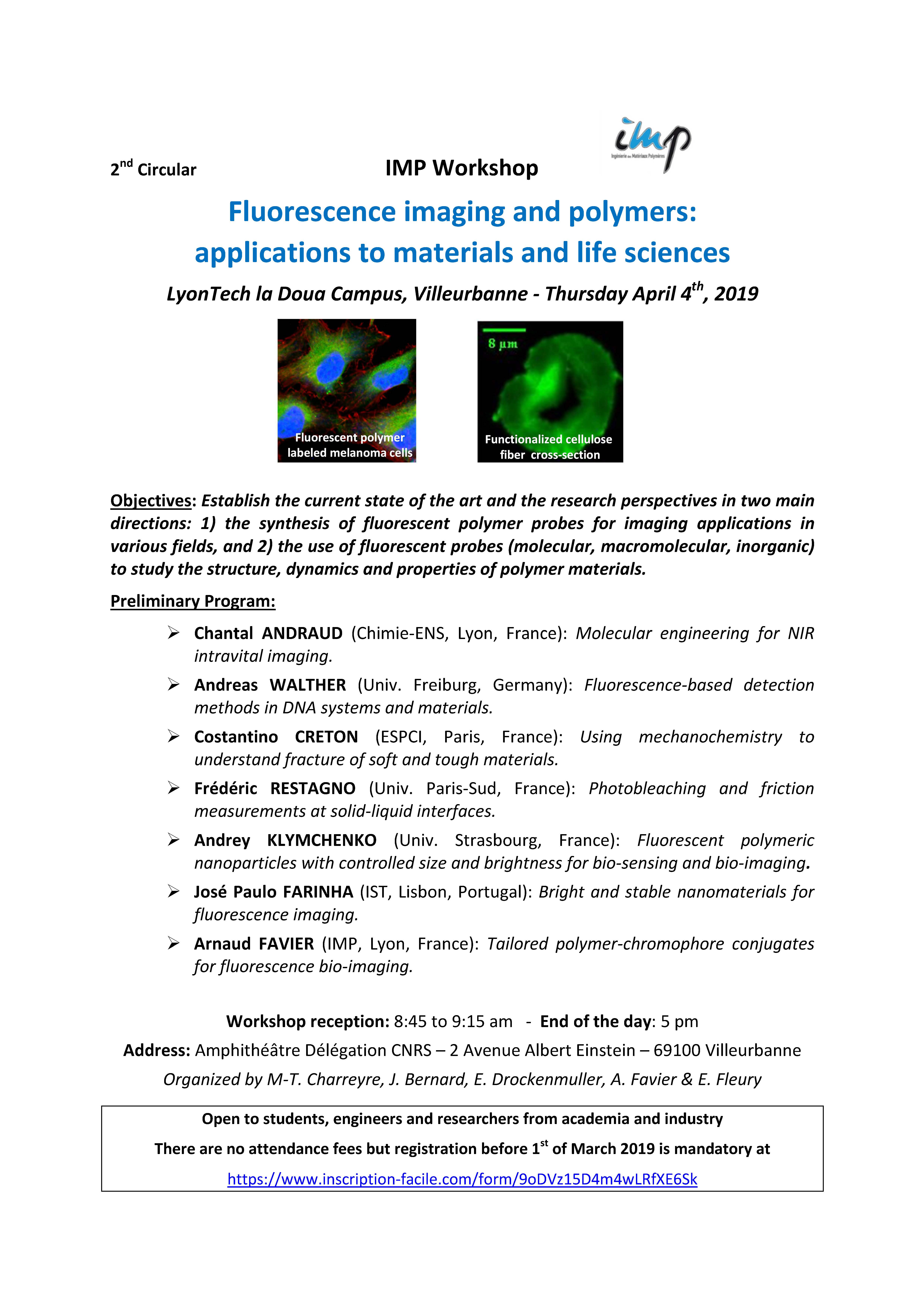 IMP Workshop – Fluorescence imaging and polymers : applications to material and life sciences