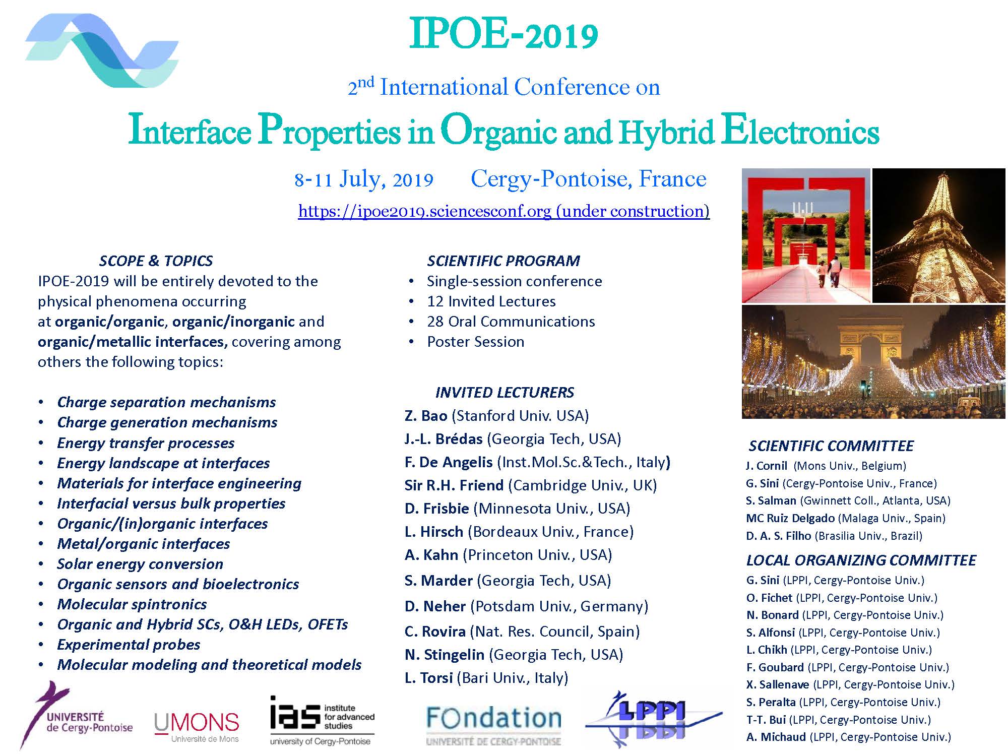 IPOE-2019 : 2nd International Conference on Interface Properties in Organic and Hybrid Electronics