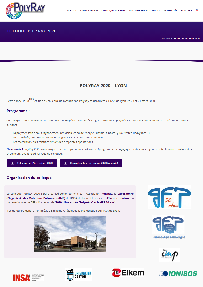Cette année, la 18ème édition du colloque de l’Association PolyRay se déroulera à l’INSA de Lyon les 23 et 24 mars 2020.