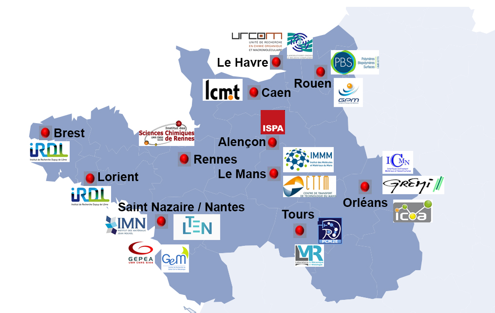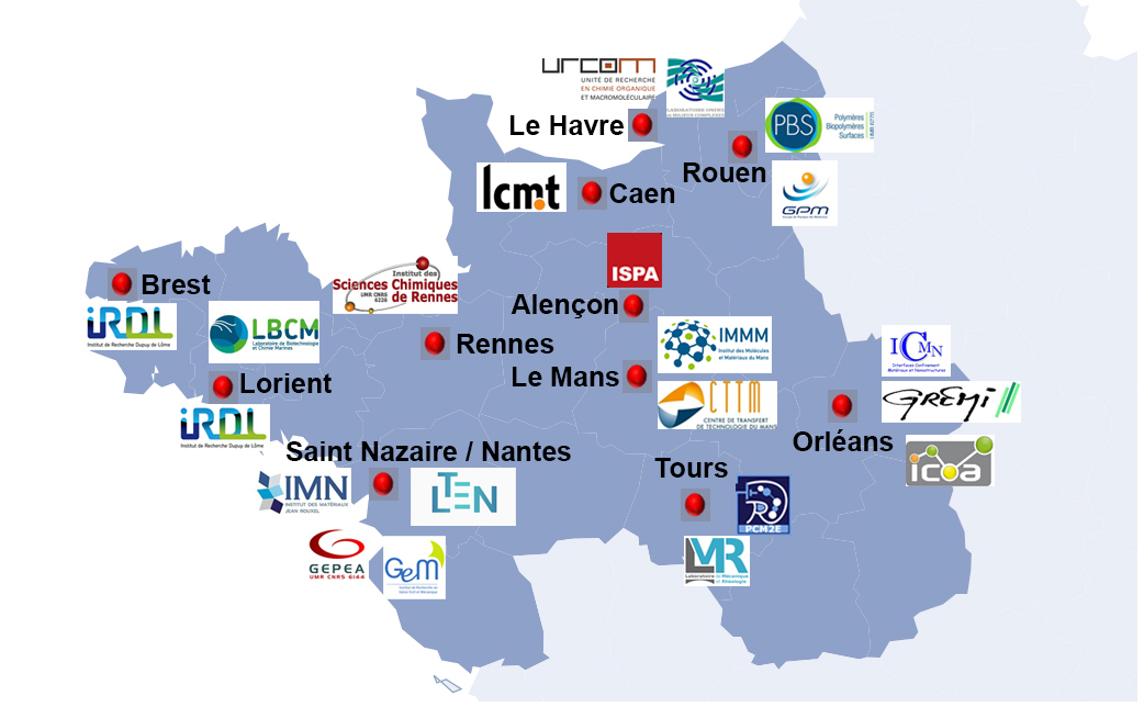 Pascal MEDERIC (IRDL, Brest), Sophie GUILLAUME (ISCR, Rennes), Christophe SINTUREL (ICMN, Orléans), Eric LEROY (GEPEA Saint Nazaire/Nantes), Laurent CAURET (ISPA, Alençon), Fabrice AZEMAR (LBCM, Lorient), Gaëlle MORANDI (PBS, Rouen), Michel GRISEL (URCOM, Le Havre), François TRAN VAN (PCM2E, Tours), Guillaume LE (Arkema, Serquigny)