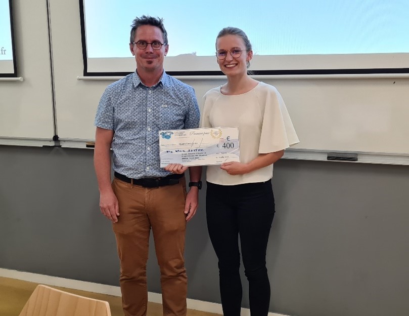 Le prix de la meilleure communication orale (contribution de la section à l’inscription à une manifestation internationale) a été attribué à Me Klara Jastak pour sa présentation sur de « Nouveaux polyesters insaturés biosourcés pour revêtements photoréticulables » (Laurence Lecamp, Nicolas Desilles – INSA Rouen Normandie – Université de Rouen Normandie – PBS – Rouen).