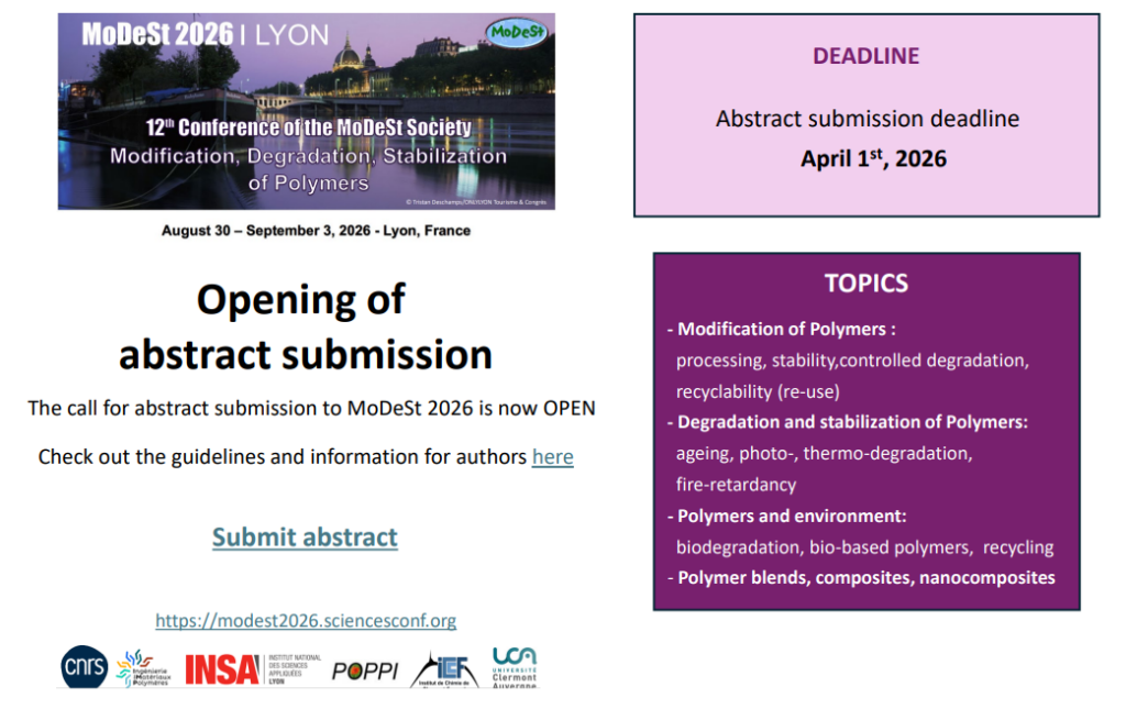 - Degradation and stabilization of Polymers: ageing, photo-, thermo-degradation, fire-retardancy