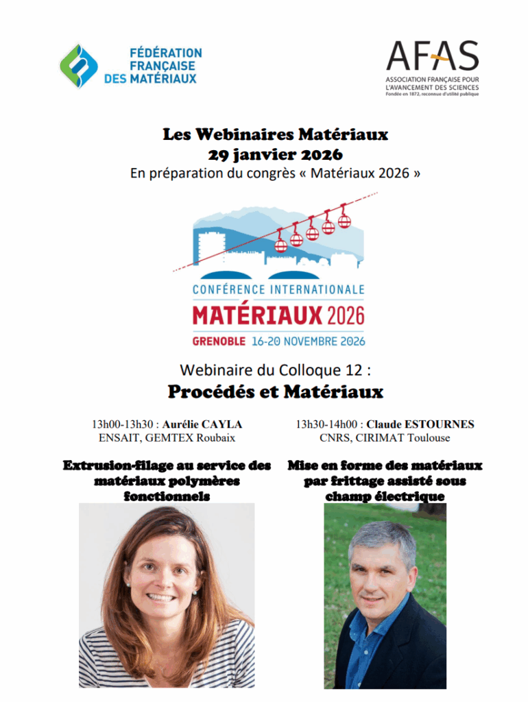 Les Webinaires Matériaux : En préparation du congrès « Matériaux 2026 »