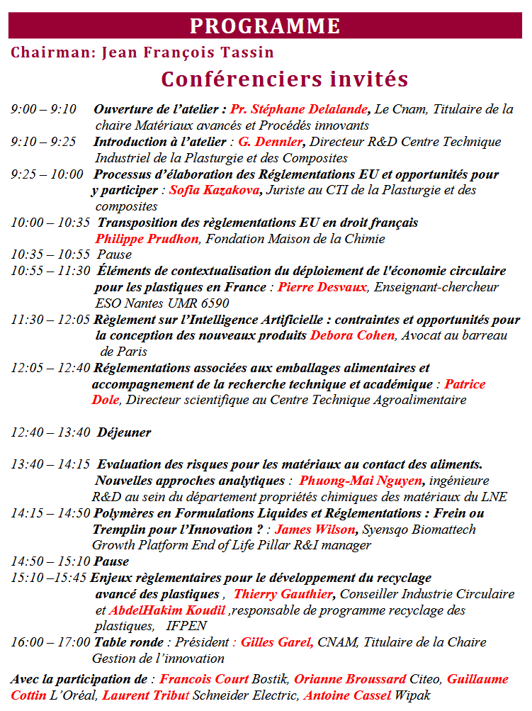 - Accès à des plateformes technologiques pour la caractérisation et le développement des nouveaux polymères et base de données sur leurs moyens techniques et humains