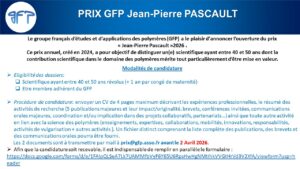Le groupe français d’études et d’applications des polymères (GFP) a le plaisir d’annoncer l’ouverture du prix « Jean-Pierre Pascault »2026 .